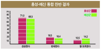 홍성군민 71%-예산군민 69.3% ‘찬성’의견 ‘자율통합’에 관심 쏠려