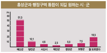 홍성은 예산과 예산은 홍성과 자율통합 희망 51%넘어