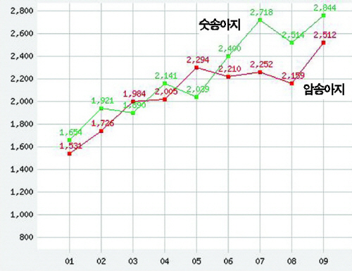 숫송아지 가격은 지난 1월부터 꾸준한 상승세를 기록하고 있으며, 암송아지에 비해 등락폭이 적다는 평가를 받고 있다. 이와 관련해 군청 축산과 이길호 축산정책 담당은 "한우 판매 가격이 높게 형성되면서 송아지를 입식하려는 사람들이 늘어나 송아지 가격이 높게 형성되고 있다. 또한 많은 농가에서 번식우 보다는 거세우 사육을 선호하면서 숫송아지 가격이 높게 형성되고 있다"고 풀이했다.