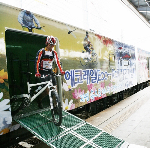 이날 서해안에 첫 선을 보인 '에코레일 자전거 특별열차'는 친환경 교통수단인 철도와 자전거가 만나는 신개념 열차로 자전거 거치용 객차가 설치된 자전거 전용열차다. 이는 최대 288명이 탈 수 있는 객실 4량과 자전거 거치용 전용 객차 4량으로 편성, 자전거를 이용한 관광에 필요한 모든 편의 시설을 갖추고 있다.