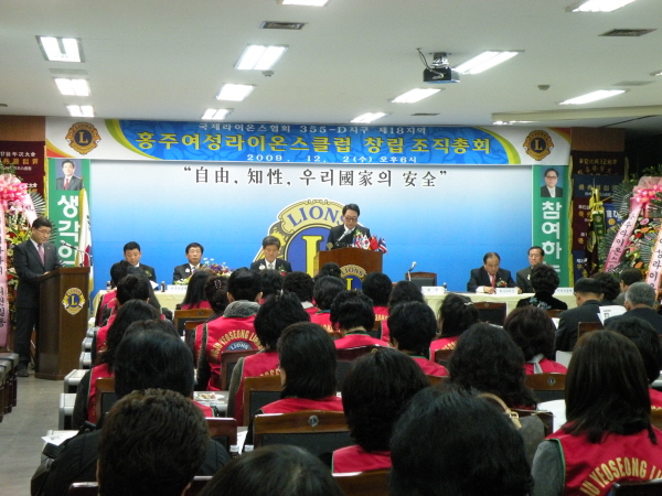 이날 총회는 홍주라이온스클럽 김창규 회장을 비롯한 클럽회원 및 신생 여성클럽 임원진 및 회원 등 200여명이 참석한 가운데 신생클럽 추진 경과보고와 라이온핀 수여 및 입회선서, 클럽헌장 및 부칙채택, 홍주여성클럽 이영진 초대회장의 선서 및 인사말로 진행됐다.