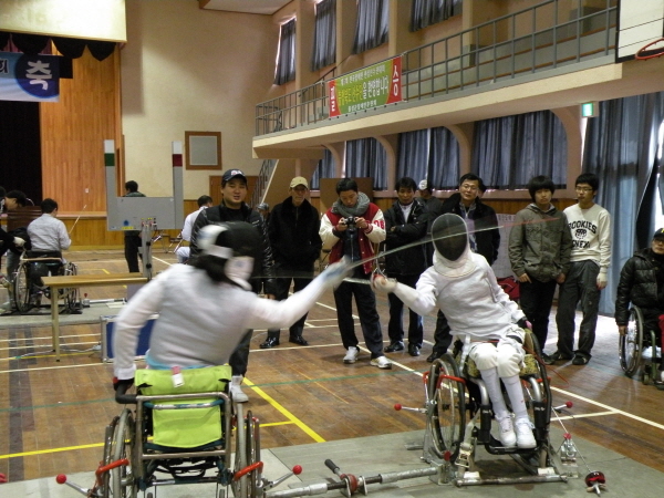 휠체어펜싱 분야에서 최강을 자랑하는 군은 지난 9월 전국장애인체육대회에서도 충남도 유일하게 금 5개, 은 2개, 동 2개를 따내는 쾌거를 올린 바 있다.