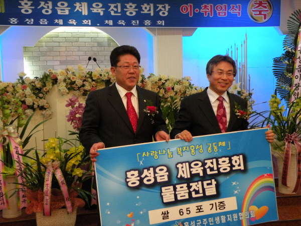 한편 읍 체육진흥회는 이날 행사에서 화환 대신 쌀 1150㎏를 기증받아 이 중 65포를 홍성군주민생활지원협의회에 어려운 이웃을 돕는데 보탬이 되고자 전달했다. 또 나머지 기증받은 쌀은 홍성읍 경로당 51곳에 1포씩 각각 전달할 예정이다.