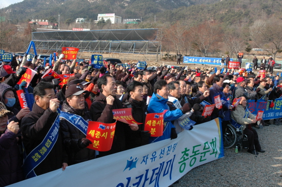 자유선진당 이회창 총재를 비롯한 당직자 500여명이 지난 23일 용봉산에서 '세종시 수정안 규탄대회'를 가졌다.