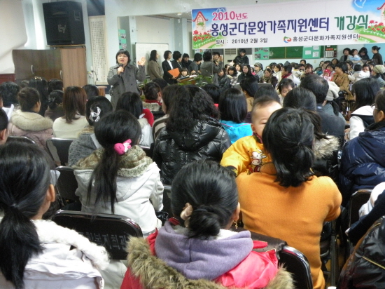 홍성군다문화지원센터(센터장 김인숙)은 지난 3일, 국제결혼이민여성과 가족, 방문지도사 등 80여명이 참석한 가운데 2010년 다문화가족지원센터 상반기프로그램 개강식을 가졌다.