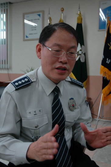 서연식(46) 홍성경찰서장은 젊고 패기가 넘쳐난다. 책상에 앉아 결재를 하는 서장이 아닌 몸으로 직접 뛰면서 현장의 애로점을 듣고 문제 해결책을 찾아나가고 있다. 서연식 서장은지난달 21일 취임 이후 파출소를 비롯해 읍․면 주요기관을 방문하면서 초고령사회에 접어드는 홍성의 사회안전망 구축에 치안을 책임지는 경찰이 더욱 더 큰 역할을 해야 한다는 것을 금새 파악했다.