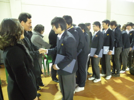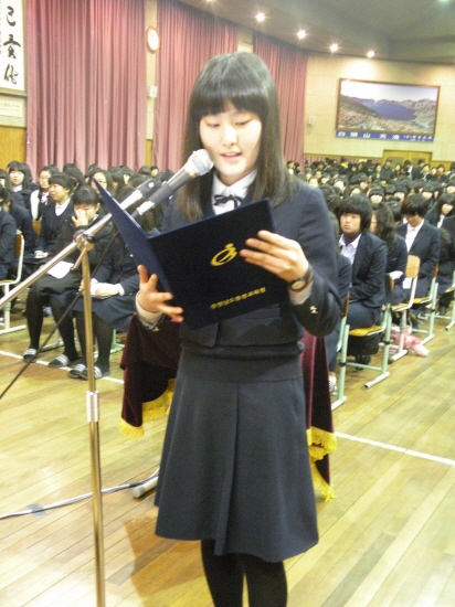 임도순 교장은 "영예로운 졸업식에서 인생의 선배로서 당부하고 싶은 말은 높고 큰 꿈을 품고 살아가길 바란다. 오늘 걷지 않으면 내일은 뛰어야 한다"며 "넓은 세상에서 원대한 꿈을 갖고 그 꿈을 향해 쉼 없이 행복한 마음으로 도전하길 바란다"고 당부의 말을 전했다.