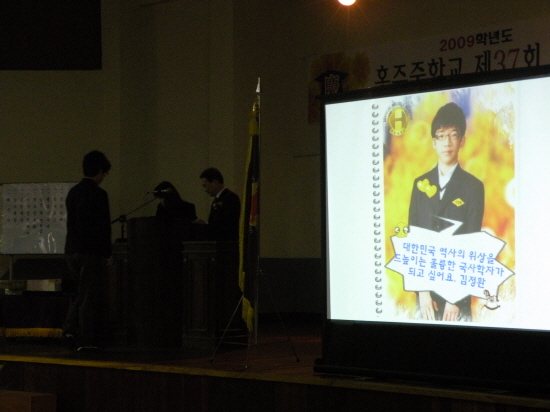 올해로 37회 졸업식을 맞는 홍주중학교(교장 정덕현)는 식전행사로 지난 3년간 학생들의 활동모습을 담은 350여장의 사진이 담긴 영상물을 관람하며 지난 3년간을 되돌아보는 시간을 가졌다. 또한 정덕현 교장이 190명의 졸업생 한명, 한명에게 일일이 졸업장을 수여해 졸업생 모두가 주인공으로 자리할 수 있는 졸업의 참의미를 되새기는 시간을 가졌다. 졸업생들이 졸업장 수여를 위해 단상에 오르면 대형스크린을 통해 '맥가이버 조를 기억해 주세요', '대한민국 역사의 위상을 드높이는 훌륭한 국사학자가 되고 싶어요'라는 장래의 꿈과 함께 졸업생들의 멋진 모습을 영상으로 보여줘 졸업생들에게 즐거운 추억을 남겨줬다. 선생님들 또한 제자들을 보내는 서운함으로 졸업생들의 손을 일일이 잡아주며 힘찬 응원의 메시지를 전했다.