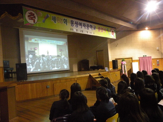 홍성여자중학교(교장 임도순) 졸업생들은 작별의 아쉬운 순간을 오래 간직할 수 있는 색다른 추억의 주인공이 됐다. 이날 졸업식에서는 임우진 학생을 비롯해 5명의 학생이 지난해 학생들에게 보람있게 써달라며 1억9000만원을 장학기금으로 전한 김기영 할머니의 장학금을 수여해 더욱 뜻깊은 졸업식이 됐다. 이어진 추억속으로 라는 주제로 졸업생들이 3년간 활동한 모습과 교사들의 영상메시지를 담아 대형 스크린으로 상영되는 순간 졸업식장 곳곳에서는 눈물을 훔쳐내기도 하고 환호와 함께 함성을 지르기도 했다. 졸업생 대표 도지은 학생의 사은사가 이어질 때는 졸업생들과 교사, 학부모들이 숙연해지기도 했다. 졸업의 영광이 있기까지 모든 어려움을 기쁨으로 뒷바라지 해주신 부모님과 선생님께 감사드린다며 시작한 사은사는 "이별의 아쉬움보다는 지난 3년 동안 배우고 익힌 결실의 기쁨을 생각합니다. 선생님의 크신 정성과 보살핌과 가르침은 살아가는데 큰 밑거름이 될 것입니다. 졸업은 끝이 아닌 새로운 시작이라는 선생님의 말씀대로 희망찬 앞날을 향해 힘차게 나가겠습니다"며 끝을 맺었다.