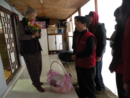 바구니를 전달받은 이기연(79․고암리)할머니는 "살아생전 꽃다발은 처음 받아본다며 우리 아들(이철이 회장)과 손주(청로회고등부)들이 있어 명절이 쓸쓸하지 않다"며 눈시울을 붉혔다.