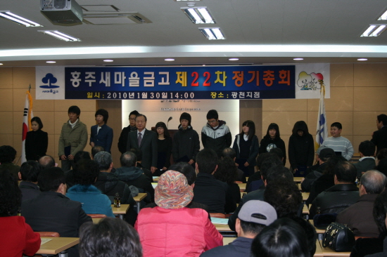 홍주새마을금고(이사장 최흥섭)는 지난달 30일 오후 2시에 금고 광천지점 회의실에서 제22차 대의원 정기총회를 열고 그동안 구 홍성새마을금고와 구 광천새마을금고의 인수에 따른 손실금을 2009년도에 전액 보전, 정리했다고 밝혔다. 새마을금고 김택노 상무는 "출자배당 7%와 대출, 공제, 예·적금 등의 이용에 따른 이용고배당 2%, 합계 9%의 배당을 실시해 홍주새마을금고가 다시 재도약할 수 있는 기반을 마련하는 중"이라고 말했다.