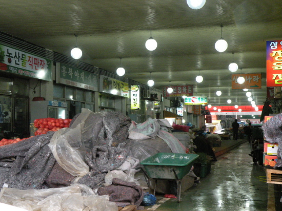 채소가격이 2배로 올랐다. 요즘 폭설과 한파 등에 채소가격이 천정부지 오르고 있다. 비가림막이 설치된 채소전에서 10년 넘게 각종 채소와 식재료 등을 팔아온 홍북야채․식품 주윤순(61) 씨는 "폭설, 한파도 채소가격이 오르는데 한 몫 했지만, 농촌에서 젊은 사람들이 일하기 않는 게 가장 큰 문제"라며 "사람들이 농촌에 없는 것도 문제지만 농촌에 살고 있는 젊은 사람들도 일하는 걸 싫어해. 노인들만이 채소를 키우고 있으니 수량도 줄고 걱정이야"라고 혀를 찬다. 또 주 씨는 "채소가격이 오르다보니 사는 사람도 힘들고 파는 사람도 힘들어. 아침나절이나 좀 채소를 찾는 사람이 있지, 오후에는 아예 없어. 채소전만 만들어놓으면 뭐해. 빈 점포들이 더 많은 걸. 이쪽 채소전에는 사람들이 거의 다니질 않아. 노점상들을 이쪽으로 끌어들이는 대책이 나와야지"라며 볼멘소리를 한다.