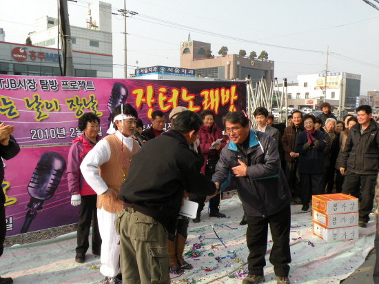설 명절 때나 그나마 사람들이 찾았다고 하는 한양떡백화점 김화석(57) 씨. 11년째 시장에서 떡집을 운영하는 김 씨는 할 말이 많다. 김 씨는 "노점상 대부분이 외지 사람들"이라며 "강제력을 동원하더라도 이쪽 채소전에 노점상들을 몰아넣어야 한다"고 말한다. 또 김 씨는 "약장사들이 수시로 점포를 임대해 군내 노인들의 주머니돈을 훑어가는데 군에서는 방관만 하고 있다. 왜 허가를 내주는지 알 수가 없다"며 "외지로 돈이 빠져나가고 시장경기는 악순환을 거듭하고 있다. 군에서 적극적으로 나서 약장사들이 장사를 할 수 없게 하고, 시장 활성화를 위해 더욱 분발해야 한다"고 주문했다.