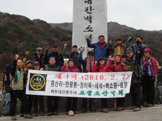 경인년 새해를 맞아 백두대간을 종주하기로 결심을 하고 단독 종주는 여건이 허락지 않아 대간 종주만 전문으로 하는 '코뿔소산악회'에 동참하기로 하였다. 드디어 백두대간 첫날이 왔다. 설레이는 마음으로 서울 잠실에서 대원들과 반가이 인사를 나누고 버스에 올랐다. 밤 11시 30분경 버스는 출발하고 산행대장이 산행 안내지도 등을 나누어 주었다. 버스에서 모든 대원들은 휴식을 취하는데 난 잠이 오지 않는다. 백두대간이 무엇인지 다시 한 번 생각해 본다.