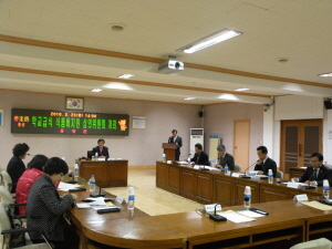 광동초 박수미 교사는 "지난해 광동초에서는 1등급의 축산물과 학교 내 유기농민 자녀가 재학 중인 관계로 무항생제 축산물을 함께 제공했다. 하지만 무항생제는 1등급 적용이 안돼 급식비 지원을 받지 못했다"며 "무항생제 축산물이 1등급 축산물과 함께 공급받을 수 있도록 규정지어 지역의 친환경축산물 구입에 사용될 수 있도록 해야 한다"고 제안했다. 이에 이병익 과장은 "지원되는 예산 범위 내에서 무항생제 축산물이 공급된다면 규제하지 않겠다"며 학교 내에서 자율적으로 추진하라며 안건을 확정했다.