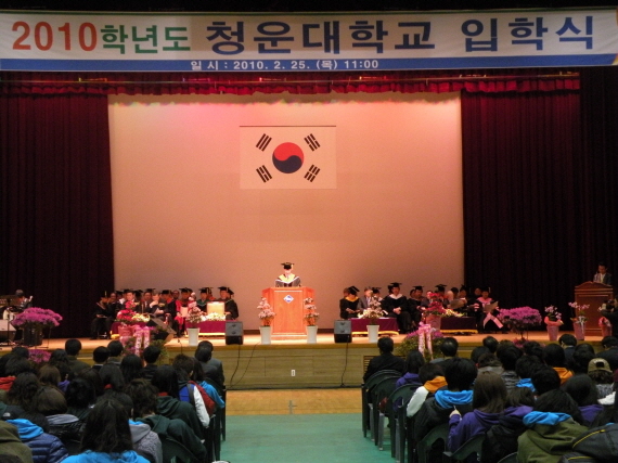청운대학교(총장 이리형)는 지난 25일, 우천으로 인해 캠퍼스가 아닌 홍주문화체육센터에서 2010학년도 입학식을 개최했다.