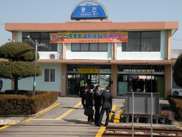 이날 <환영 통통통 뮤직카페 트레인>이라는 현수막을 내건 광천특산물영어조합(회장 양해성)과 광천지역 기관단체장들은 광천에서 점심식사까지 할 수 있는 방법이 없겠냐며 코레일 측과 협의를 했고, 결과는 두고 봐야 할 것이다.