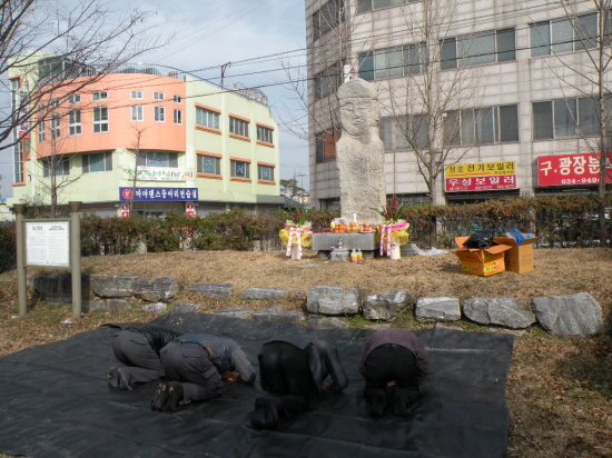 홍성읍 대교4리 마을(이장 우성제)는 지난달 27일 마을회관 앞 대교공원에 마을주민 50여명이 참석한 가운데 정월대보름맞이 미륵제를 지냈다. 마을 대부분 홍성정기시장 상인들로 구성된 마을주민들은 이날 <대교리석불입상>에 제를 지내고 올해 시장의 발전과 마을의 안녕, 마을주민들의 무사평안을 기원했다. 또 제를 마치고 마을주민 간 음식을 나누며 화합의 시간도 가졌다.