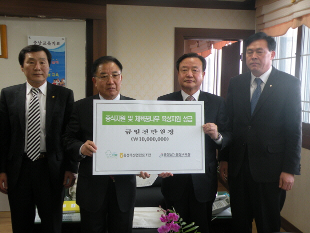 홍성축산업협동조합(조합장 유창균)은 지난 11일, 군내 저소득층가정 학생 중식지원 및 체육 꿈나무 육성 지원을 위한 1000만원의 성금을 기탁했다.