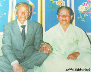 "지금까지 행복했던 것만은 아녀. 나는 농사를 짓다 광산(영흥도)에 나가 발동기 돌리는 일도 하고 소도 키우며 동생들을 돌봐오고 이 사람(부인)은 농사지으면서 자식들을 키우느라 고생도 많이 혔지. 그래서 이 사람 보면 너무 고생시킨 것 같아 많이 미안혀."
