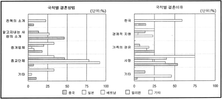 2005년 우리나라 혼인건수는 316,375건이며 그 중 국제결혼은 43,027명으로 13.6%에 달한다.
