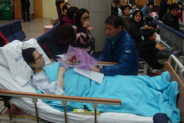 아무것도 모르고 참석한 강 씨는 남편이 전하는 꽃다발과 프러포즈를 침대에 누워있는 상태로 하염없는 눈물과 함께 받아들였다. 이들의 애틋한 사랑을 지켜본 많은 이들은 할 말을 잃은 채 눈시울을 붉히며 이들의 사랑을 축하해줬다. 음악회에 참석한 신덕철 원장 또한, 이들의 사랑에 대해 격려의 말과 함께 감동을 전하며 예정에 없던 노래를 무반주로 불러 이들의 사랑을 축복해줬다.