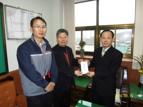 홍성군야구연합회(회장 이창원)는 지난 15일, 홍성중학교의 체육꿈나무 육성을 위해 써달라며 100만원의 장학금을 전달했다. 그동안 홍성중학교 운동장을 이용해 연습을 해 온 야구연합회는 감사의 뜻을 전하기 위해 이번에 장학금을 전하게 된 것이다.