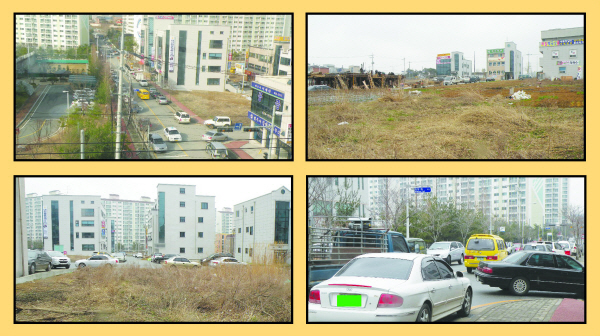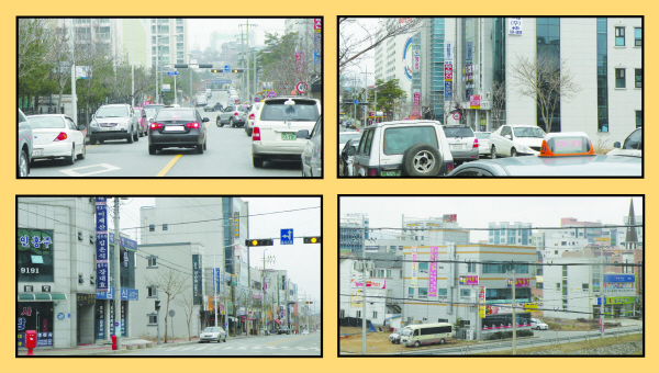 이런 연유로 법원·검찰청을 통과하는 중심도로에는 저녁 무렵이면 많은 차량들이 주․정차해 북새통을 이루고 있다. 중심도로에 차량들이 붐비다보니 중심도로 주위로 차량을 정차할 수 없게 되고 결국 골목골목 빈 공터나 좁은 도로에 차량들이 무질서하게 정차돼 있다. 깨끗한 월산상가는 애당초 기대하기 어려운 형편인 것이다.