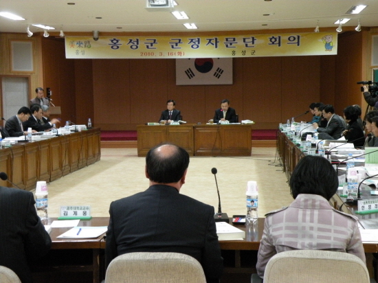 홍성군 군정자문단(단장 김진욱) 회의가 지난 16일 군청대강당에서 열렸다. 군정자문단 5개 분과 자문위원들은 한결같이 "홍성의 정체성을 찾는 정책과 비전을 가지고 군정을 실현하는 것이 가장 시급한 과제"라며 2010년도 군정 목표에 대한 정책질의와 요구사항 등이 쏟아냈다. 우선 김진욱(혜전대 행정전산과 교수) 단장은 "홍성은 어떤 도시인가. 친환경농업도시인가, 농·축산업 중심도시인가, 역사와 문화가 공존하는 도시인가, 역사문화인물 도시인가. 무엇보다도 홍성의 정체성을 찾는 것은 홍성의 미래를 만들어가는 가장 중요한 과제"라며 "분명한 목적의식을 갖고 군정이 실현되기를 바란다"고 말하며 이를 위해 자문단 회의가 체계적이고 정기적으로 열려 홍성의 바람직한 정체성을 찾길 기대한다고 밝혔다.