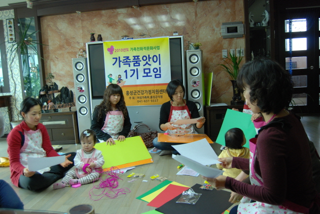 건강가정지원센터는 그동안 만 12세 이하의 자녀를 둔 지역 내 가정을 대상으로 참여자를 모집하여 간호사, 다문화가정여성 등 총 6명으로 이뤄진 가족 품앗이 1기 모임을 시작하게 됐다. 이 날 모임에서는 부모의 역할에 대한 토론과 함께 부모 사명서를 만든 후 자녀교육에 대한 정보를 교류하는 유익한 시간을 가졌다.