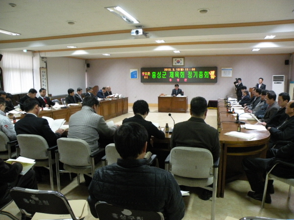 홍성군체육회는 지난 15일 정기총회를 열고 지난해 사업결과 보고, 회계감사 보고 및 승인, 2010년도 체육행사 일정 및 예산안 승인 등을 의논했다.