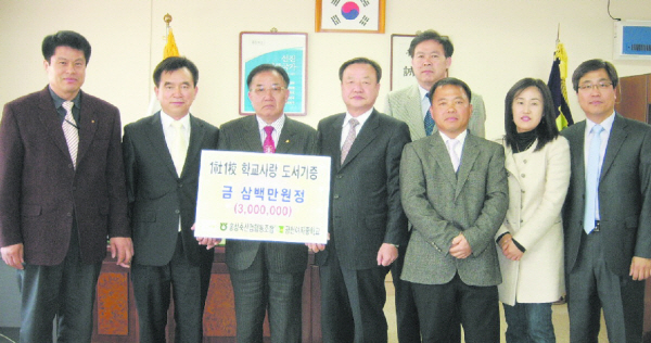 홍성축산업협동조합(조합장 유창균)은 광천여자중학교(교장 이선우)에 학생들의 독서교육 활성화를 위한 도서구입비 300만원을 기증했다. 홍성축협은 지난 2007년 광천여중과 1사1교 협정을 맺은 후 1교 1사 1문고 운동의 일환으로 매년 지속적으로 도서구입비를 전달하고 있어 주위의 귀감이 되고 있다.