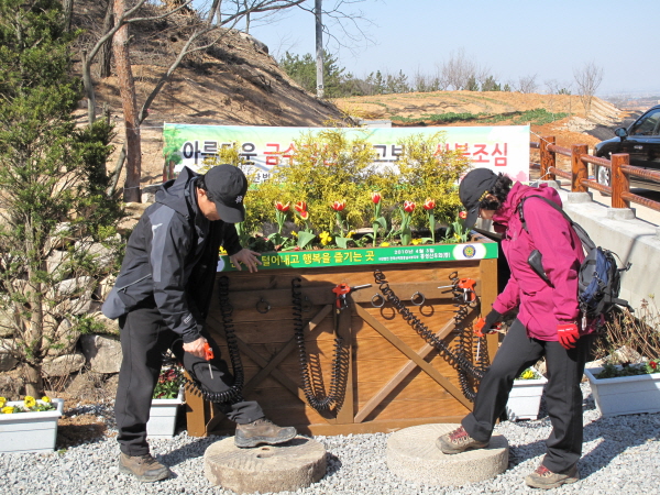 홍성산우회 회원 70여 명과 홍성지역 보이걸스카우트 학생 200여 명은 지난 3일 용봉산 매표소(구룡대) 부근에서 자연보호 활동 및 산불예방 캠페인을 실시했다. 한편 홍성산우회 회원들은 400여만원을 들여 용봉산을 찾는 등산객들을 위한 먼지털이대를 설치해 호응을 얻고 있다. 저작권자 © 홍주일보 무단전재 및 재배포 금지 한관우 편집국장 다른기사 보기 페이스북 카카오톡 URL복사 기사공유하기