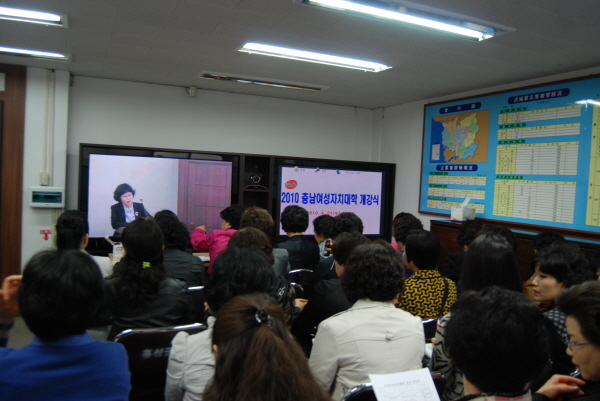 충남도내 16개 시도를 연결해 영상교육으로 실시되는 여성자치대학은 모집 정원 30명에 50여명이 참여해 지역 여성들의 교육 및 사회참여에 대한 인식의 변화를 느낄 수 있었다.