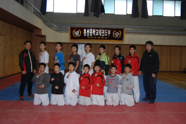 이에 홍성군태권도협회와 홍성군체육회, 학부모 등은 교육청 관계자와 군청을 찾아 중학교 태권도부 육성의 필요성을 제기하고 충남태권도협회 부회장을 역임하고 학생시절 선수로서 전국대회를 제패했던 홍성중학교 이영교 교감을 만나면서 지역 태권도 인들의 오랜 숙원이었던 중학교 태권도부가 창단됐다. 2009년 4월 홍성중학교에 창단된 태권도부는 이재엽 감독(45․홍성중 교사)을 중심으로 선수시절 전국체전 등 각종 대회에서 좋은 성적을 거두고 지도자 수업을 마친 장두상(27)코치가 학생선수들을 지도하고 있으며 외지로 유학을 떠났던 학생선수들이 다시 돌아와 김형국 선수 등 모두 14명의 우수선수로 구성됐다.