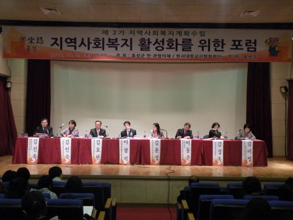 이날 토론회는 민·관 협의체위원, 관계공무원,주민 200여명이 참석한 가운데 3시간에 걸쳐 진행된 토론회는 이창식 한서대학교 아동·청소년학과 교수의 <홍성군 사회복지의 뉴 패러다임>이라는 주제발표에 이어 김윤정 한서대 노인복지학과 교수가 좌장을 맡은 가운데 홍성군 지역사회복지 활성화를 위한 다양한 문제점과 의견을 개진했다.