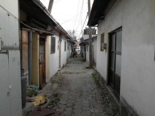 하지만 지금은 인적 드문 뒷골목이다. 상가는 너무 오래돼 퇴락했고, 아예 문을 닫아버린 상가들은 을씨년스런 풍경을 자아내며 쓸쓸히 자리를 지키고 있다. 상가들은 거의 없어져 버리고 그 자리에 그 골목 안에 가정집들만이 어제와 오늘, 내일 떠날 날만을 기다리고 있다.