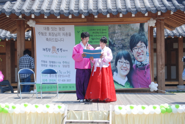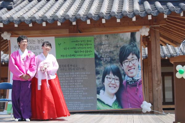이들의 결혼식을 대견스럽게 지켜보던 홍순명 선생은 "이들은 농촌의 밝은 미래를 이끌어갈 차세대 농촌의 희망"이라며 "앞으로 자연과 이웃이 있는 시골 공동체를 살리고 도시에 속한 이웃들과 연계해 농촌과 도시가 순환하는 마을을 만들어 자녀들에게 가장 큰 선물인 아름다운 농촌마을을 물려주길 바란다"고 당부했다.