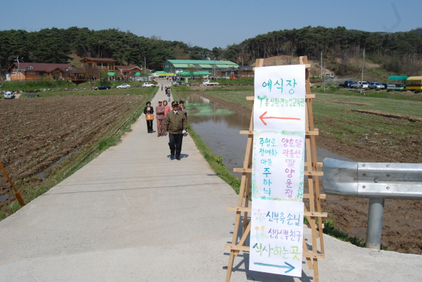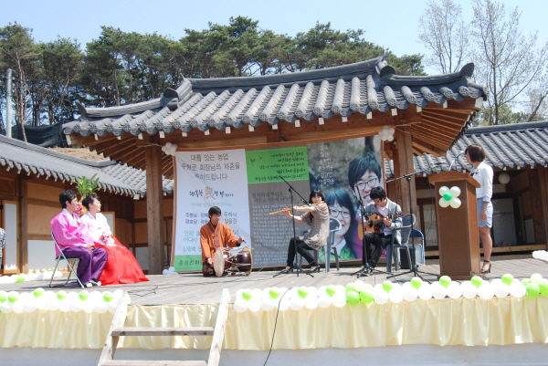 주말이면 북새통을 이루는 도심 속 결혼식장은 없고 따스한 햇살이 내리쬐는 싱그런 녹음 속 탁트인 야외 마당이 있을 뿐이다. 하늘과 넓은 들녘이 내려다보이는 홍성환경농업교육관 앞 마당에는 마을 주민을 비롯해 이들의 결혼을 축하해 주기위해 참석한 하객 1000여명이 이들의 앞날을 축복해줬다. 또한 눈살을 찌푸리는 친구들의 짖궂은 장난 대신 동아리 친구들의 사물놀이 공연과 대금과 기타가 조화를 이루는 가운데 친구가 불러주는 축가가 결혼식을 더욱 빛내준다. 더욱 특이한 것은 이들의 결혼식에는 혼수도 없다. 단지 두 사람의 하나됨을 알리는 동그란 링 모양의 결혼반지가 전부이다.