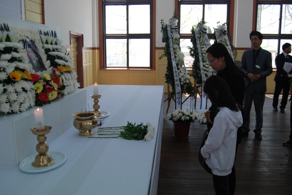 온 국민의 애도 속에 천안함 희생자들에 대한 영결식이 있던 다음 날인 지난달 30일 홍성고등학교에 마련된 최한권 원사의 분향소에는 최 원사의 모친과 부인, 딸 등 유가족들이 방문했다.
