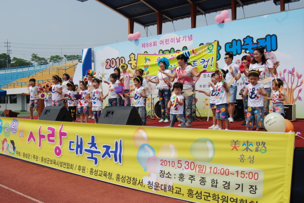 제88회 어린이날 기념해 홍성군과 보육시설연합회 주관으로 열린 이날 축제에서는 주인공인 어린이와 가족, 이완수 부군수, 이동의 교육장 등 5000여명이 참석한 가운데 어린이들에게 꿈과 희망을 심어주는 흥겨운 한마당 잔치가 펼쳐졌다.