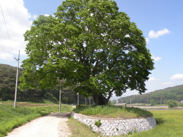 마을 안쪽으로 들어서다보면 아름드리 울창한 잎을 자랑하는 수령 400여년으로 추정되는 느티나무가 온갖 비바람과 폭풍 등을 이겨내며 마을주민들과 희로애락을 같이해 왔다. 느티나무는 현재 군지정 보호수로 지정되어 있다. 예전까지만 해도 이곳에서 마을 주민들은 당제를 올리며 마을의 안녕을 빌며 한 해 무사무탈을 기원하기도 했다. 마을 주민들은 느티나무 아래 공원을 조성해 마을주민들의 여가공간과 오고 가는 사람들의 쉼터 역할로 활용될 수 있기를 원했다.