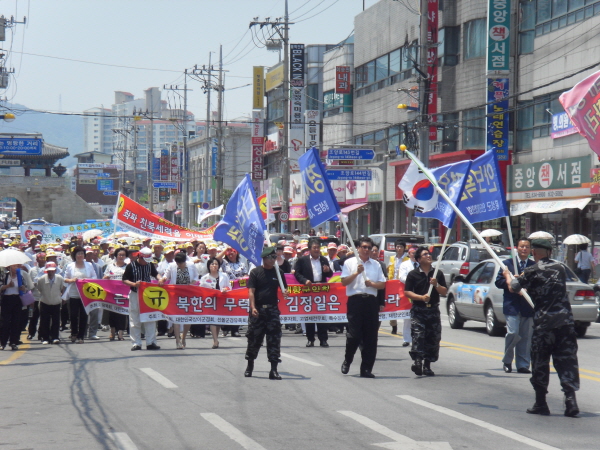 홍성군 안보단체협의회 10개 단체장 및 회원300여명은 지난달 25일 오후 1시부터 조양문에서 김좌진 장군상까지 시가행진 행사를 가졌다. 이날 시가행진은 보훈단체가 홍성군에 창립된지 50여년만에 처음으로 치뤄진 행사다. 행사에 참여한 회원들은 감회가 새로웠으며 다시는 이 땅에 전쟁의 비극이 일어나서는 안된다는 굳은 의지로 노구의 불편한 몸을 이끌고 무더위 속에서도 지역주민들과 함께 힘차게 안보구호를 외쳤다.