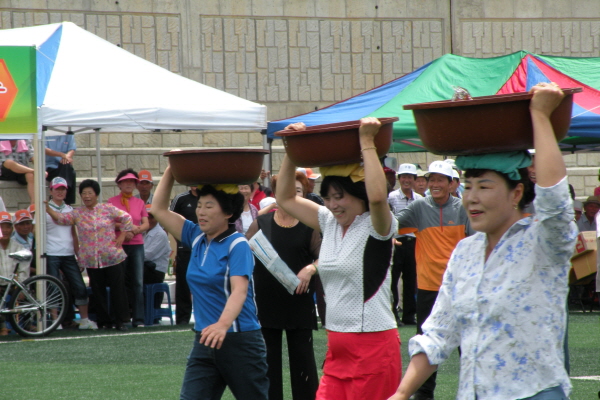 한때 비가 온다는 기상예보와 아침부터 흐린 날씨에도 불구하고 운동장은 각 마을별 주민들이 대거 참석해 분주한 모습이었다. 마을별로 준비한 천막 안에선 음식을 준비하고, 농번기 때 자주 만나지 못한 이웃들과 이야기꽃을 피우느라 활기로 넘쳐났다. 개회식과 홍성밸리댄스팀의 공연이 마무리되고 100m 달리기 예선을 시작으로 본격적인 체육대회가 시작되었다. 이날 펼쳐진 체육대회는 육상 100mㆍ400m 학생부와 일반부 경주, 화합계주, 물동이 이고 달리기, 훌라후프, 썰매끌기, 단체줄넘기 등 다채롭게 치러졌다. 특히 운동장에 깔린 인조잔디의 특성을 살린 썰매끌기는 남녀가 함께하는 이색경기로 큰 호응과 함께 색다른 재미를 선사했다. 잔뜩 흐린 날씨와는 달리 다행히 이슬비만 간간히 내려 대회를 진행하는 데는 큰 지장이 없었다.