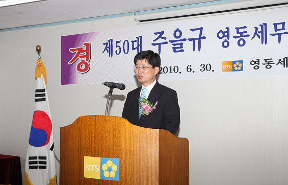 주을규 영동세무서장은 "맑고 쾌적한 자연과 전통이 살아 숨 쉬는 고장 영동에서 근무할 수 있게 되어 기쁘다"며 "납세자를 진정한 고객으로 섬기는 국세청이 되도록 지혜와 힘을 모으자"고 강조하고, 책임감을 가지고 당면한 주요 현안업무를 차질 없이 추진할 것을 당부했다.