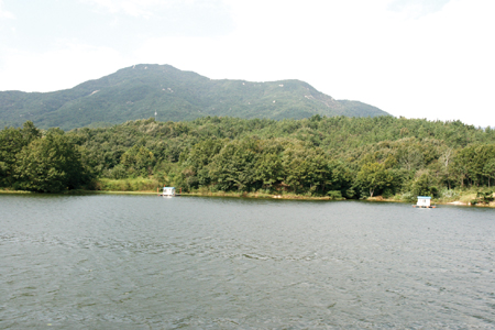 예산군 덕산면 둔리 2리 일원에 위치한 둔리저수지 근처의 어죽집들이 최근 어죽에 개사료를 섞어 판다는 유언비어로 인해 몸살을 앓고 있다. (사진은 평화로운 둔리저수지의 전경)