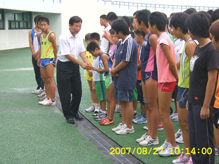 홍성교육청(교육장 오수영)은 지난 27일 오전10시 홍주종합운동장을 찾아 ‘2007 교육감기 육상경기대회’ 참가를 위해 이달 28일부터 이틀동안 훈련 중인 홍성군 육상대표들을 격려 하였다.