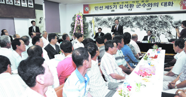 이날 김 군수가 취임 이후 첫 순방지로 고향인 홍북면을 찾은데 대해 많은 주민들은 큰 의미를 부여하는 모습이었다. 홍북면은 김 군수의 고향이자 공무원시험에 합격해 1970년 첫 공직생활을 시작했던 곳이다. 김 군수는 "고향 어른들을 만나 뵙게 돼 반갑다. 당선 이후 첫 인사를 드리게 됐다. 성원에 진심으로 감사한다"고 말하고 "지난 지방선거에서 보여주신 열기처럼 앞으로도 계속해 군정수행에도 성원을 보내주시기 바란다"고 당부하면서 주민과의 대화를 시작했다.