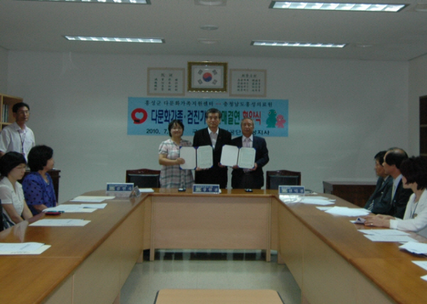 지난 20일 홍성의료원 2층 소회의실에서는 국민건강 보험공단 홍성지사 주관으로 다문화 가족지원센터와 홍성의료원이 자매결연 협약식을 가졌다.