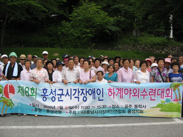 이날 수련대회에는 시각장애인협회 회원 및 직원 90명이 참여해 주차장을 시작으로 동학사 사찰까지 왕복 2.4km를 함께 걸으며 친선과 화합을 다졌다. 사찰에서 내려온 회원들은 점식식사 후 시원한 계곡물에 발을 담그기도 하고 노래방에서 마이크를 잡고 노래실력을 뽐내며 장애에서 오는 소외감을 떨쳐냈다.